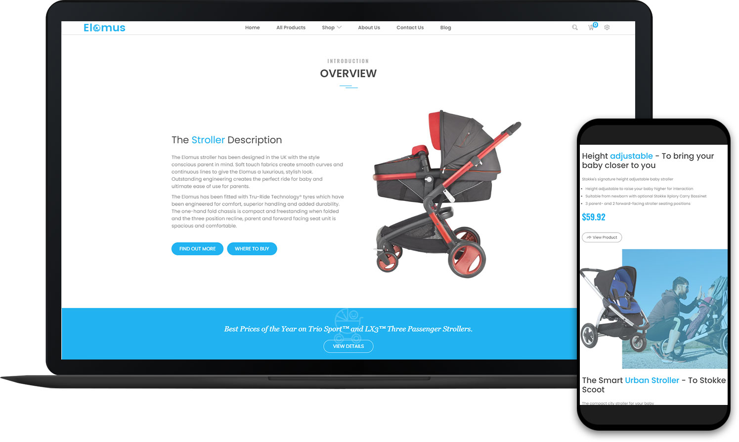 简洁大气婴儿推车商城产品网站建设